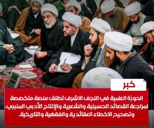 الحوزة العلمية في النجف الاشرف تطلق منصة متخصصة لمراجعة القصائد الحسينية والشعرية والإنتاج الأدبي المنبري، وتصحيح الاخطاء العقائدية والفقهية والتاريخية.